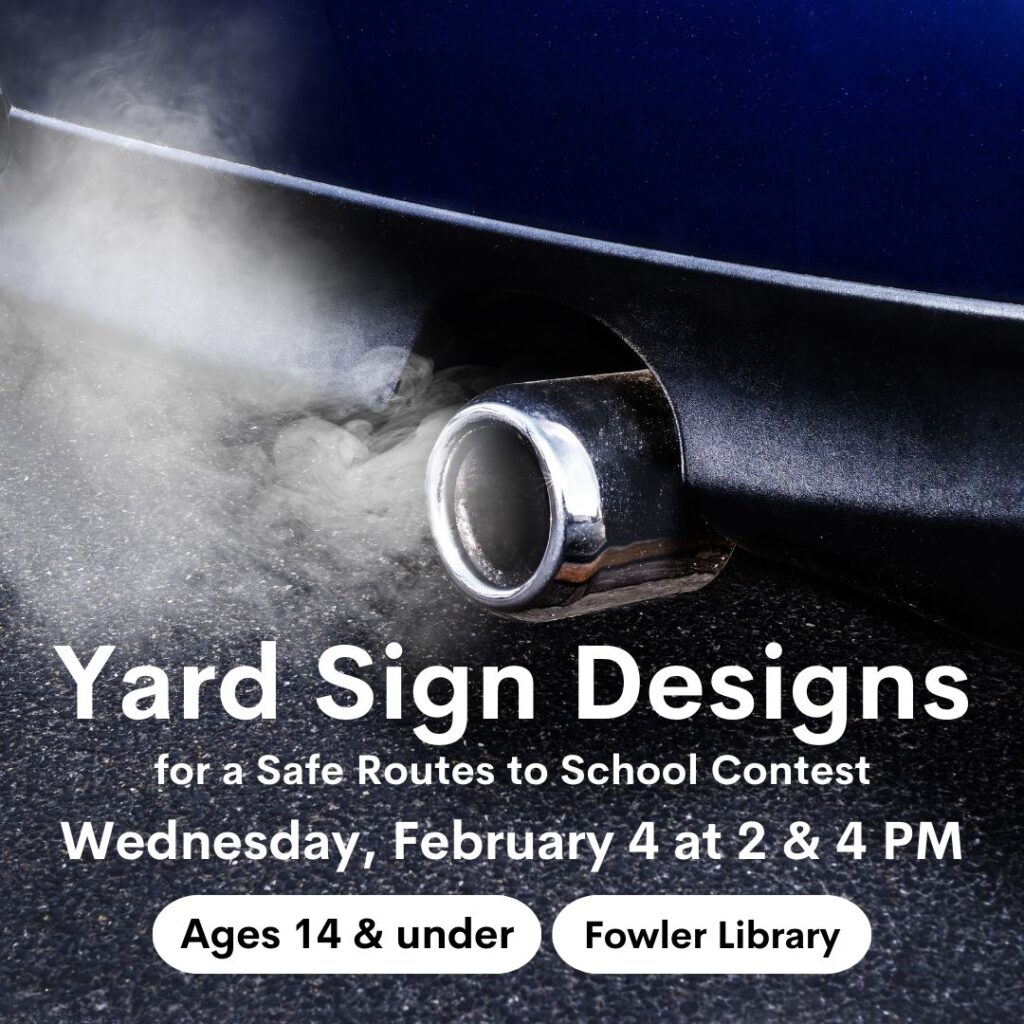 Fowler Library’s Craft Lab will be joined by Massachusetts’ Safe Routes to School (SRTS) ambassadors and Mothers Out Front to create designs to enter in this year’s SRTS yard sign contest. The Massachusetts SRTS Program’s Yard Sign Design Contest is a way for students to use their creativity to help promote safe roads for cyclists and pedestrians in their communities. This year’s theme is “No Idling.”